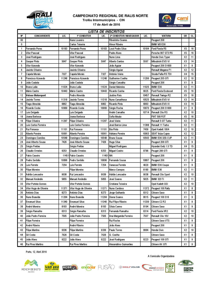 A abertura do Campeonato Regional de Ralis do Norte faz-se com o Rali Fisgas do Ermelo e uma lista de 45 equipas inscritas.